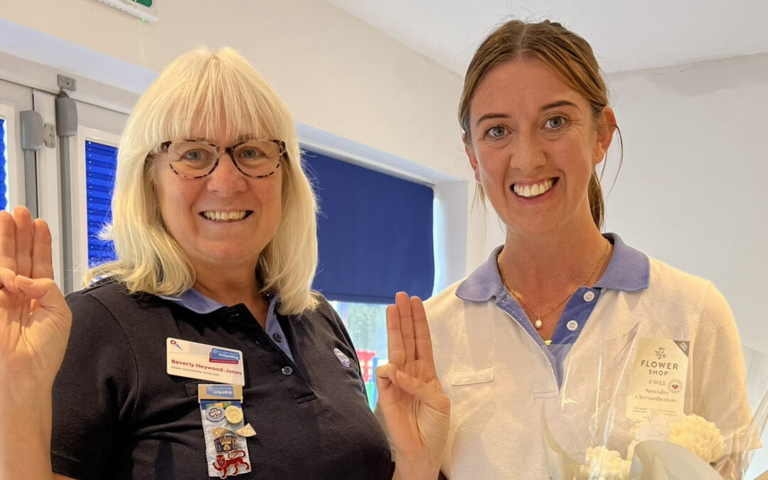 Beverly Heywood-Jones, County Commissioner, thanked Charity for all she has done and presented the award at Faurefold in the presence of her whole unit where they were enjoying a Brownie Holiday. Congratulations too to Charity as she was married last month.